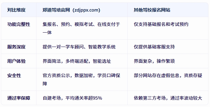 五、对比其他驾校报名网站:郑道驾培的差异化优势