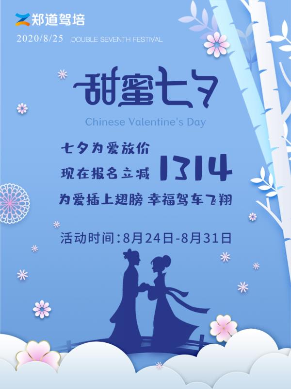 七夕学车不寂寞,漂亮的驾校前台、帅帅的教练都在郑道驾培等您哟~为了在这个浪漫的节日里,让单身的各位享受到那么一丝温暖,郑道驾培学车网为大家带来以下优惠活动: