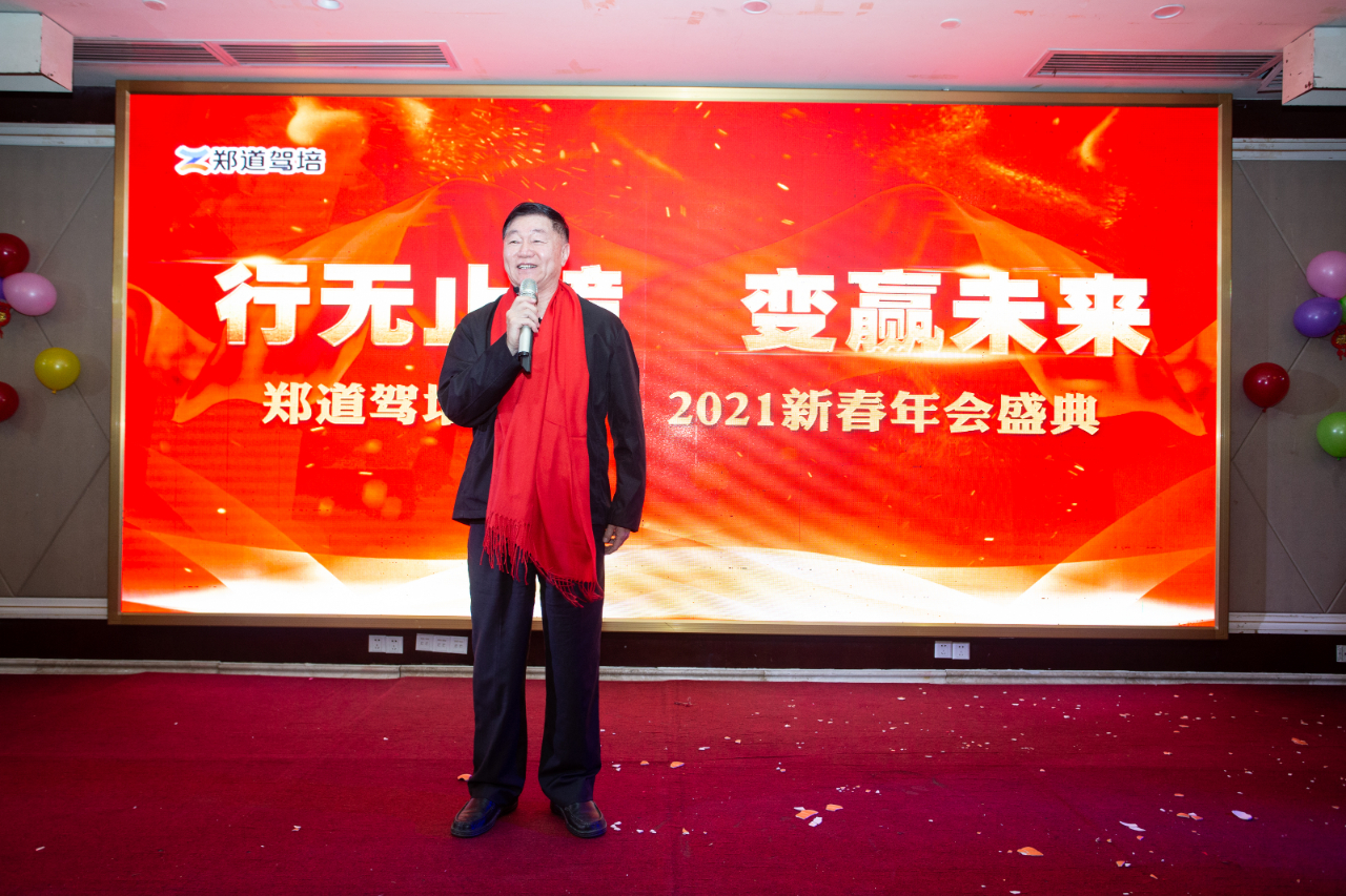 他首先代表郑道驾培集团领导班子,向长期以来关心和支持公司发展的各界领导和朋友表示衷心的感谢,向长期以来的合作伙伴及公司员工致以节日的问候和最真挚的新年祝福。然后,详细介绍了集团2020年度在公益慈善、软硬件基础建设和市场业务方面取得的不俗业绩。祝愿大家在新的一年里一路同行、团结奋进、再立新功,再创佳绩。并表示在新的一年里公司计划筹备成立基金组织,为社会公益事业作出更大、更持久的贡献!
