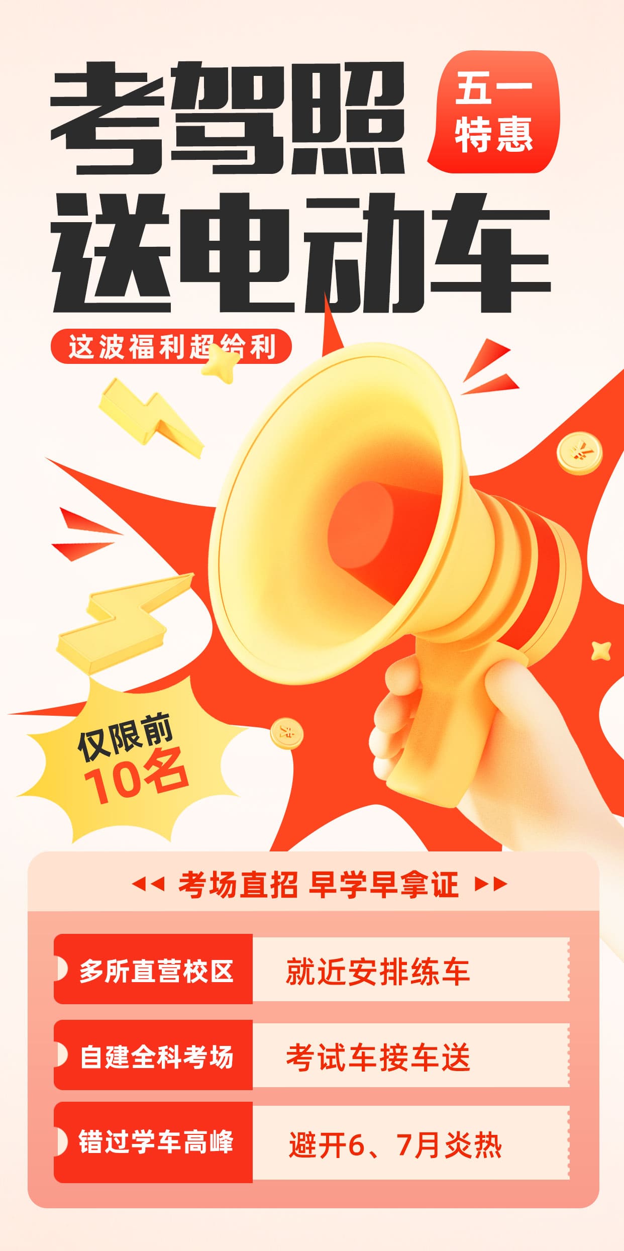五一假期的欢声笑语虽已渐渐远去,但郑道驾培的五一特惠活动却仍在火热进行中!是的,您没有听错,那个备受瞩目的“五一送电动车”活动并未因假期的结束而终止,而是延长至5月12日,给更多有意报名的朋友留下了宝贵的参与机会。